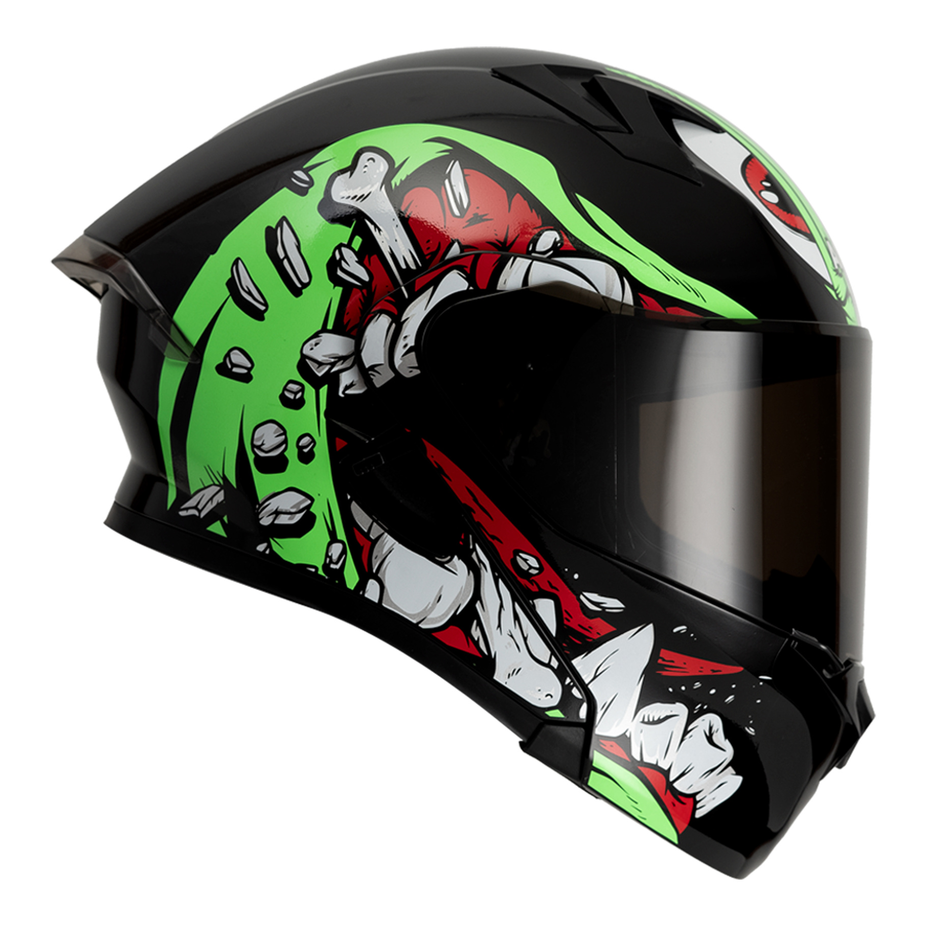 CASCO RODA RUSH NEGRO VERDE BONE CRUSHER MICA HUMO ABATIBLE SVS